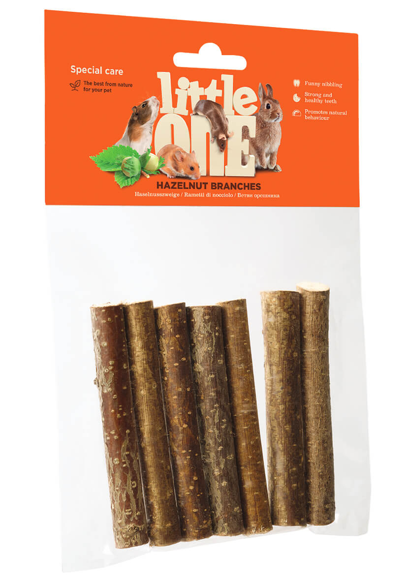Лакомство Little One "Ветви орешника" для грызунов, для изгрызания, 100гр, 7шт порадует вашего питомца и поможет ему сточить постоянно растущие зубы. Простая добавка сделана из любимых природных ингредиентов вашего животного, а её великолепный вкус позволит использовать лакомство для тренировок.
