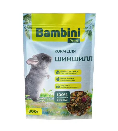 Сбалансированный повседневный корм для шиншилл создан с заботой о ваших малышах. Наши специалисты подобрали ингредиенты с учётом видовых особенностей питания шиншилл. В состав рациона входит комплекс витаминов для крепкого здоровья, овощи и фрукты для насыщенного вкуса, омега-3 и 6 для здоровой кожи и шерсти. Корм Bambini Pets не только вкусный, но и полезный.