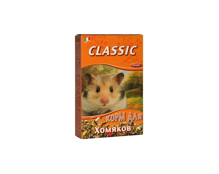 Классическая смесь для хомяков Fiory Classic. В состав входят злаки и зерновые продукты, семена масличных культур и маслосодержащих плодов и фруктов, гречиха, пекарные продукты. Корм упакован в вакуум.