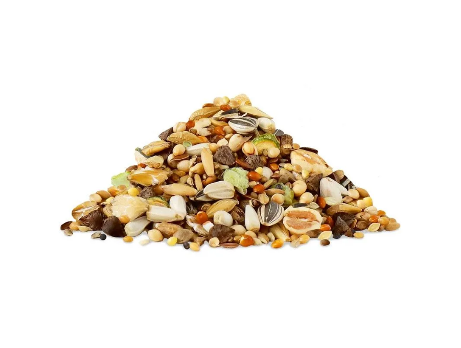 Состав: Просо белое,Просо желтое, Сорго белое, Гранулы мультизерновые, Гречиха, Канареечнное семя, Просо красное, Луговое разнотравье, Сафлор, Пайза, Ячмень, Ячмень плющеный, Паникум желтый, Овсянка, Лен, Пшеница воздушная, Ячмень воздушный, Семена подсолнечника, Горох плющеный, Расторопша, Кабачок сушеный, Нуг, Полезные семена, Перилла, Кунжут, Инулин, Экстракт юкки