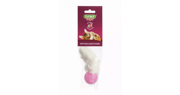 Привлекательная натуральная игрушка для кошек - высушенный кроличий хвост в шерсти, прикреплённый к пластиковому мячику с бубенчиком.
