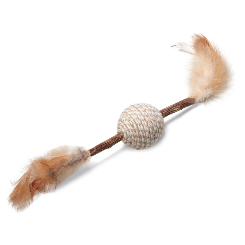Игрушка для кошек Triol Natural "Мячик с перьями" сделана из натурального растения мататаби, которое привлекает внимание питомца своим ароматом, бережно заботится о зубах, а также помогает справиться со стрессом и агрессией. Игрушка подойдет для совместной игры с хозяином в дразнилки и догонялки. При этом яркие перья привлекают кошек и для самостоятельной игры. Регулярные игры развивают в кошках скорость реакции, физическую форму и инстинкт хищника. В составе игрушки мататаби, сизаль, перо и металлические элементы. Размер игрушки: 220 мм. Диаметр мяча: 40 мм. Triol Natural – линия товаров для питомцев из натуральных материалов. Каждая игрушка сделана с учетом потребностей наших питомцев с любовью и вдохновлена природой.