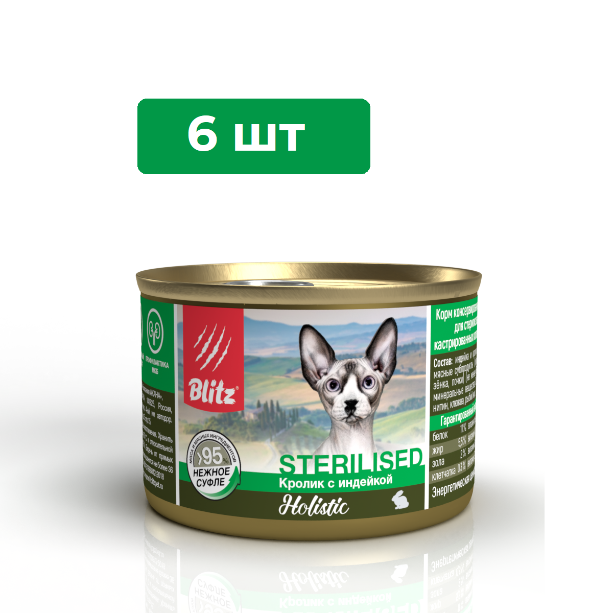 Влажный корм Blitz Holistic «Кролик с индейкой» воплощает все пожелания стерилизованных кошек и их владельцев.