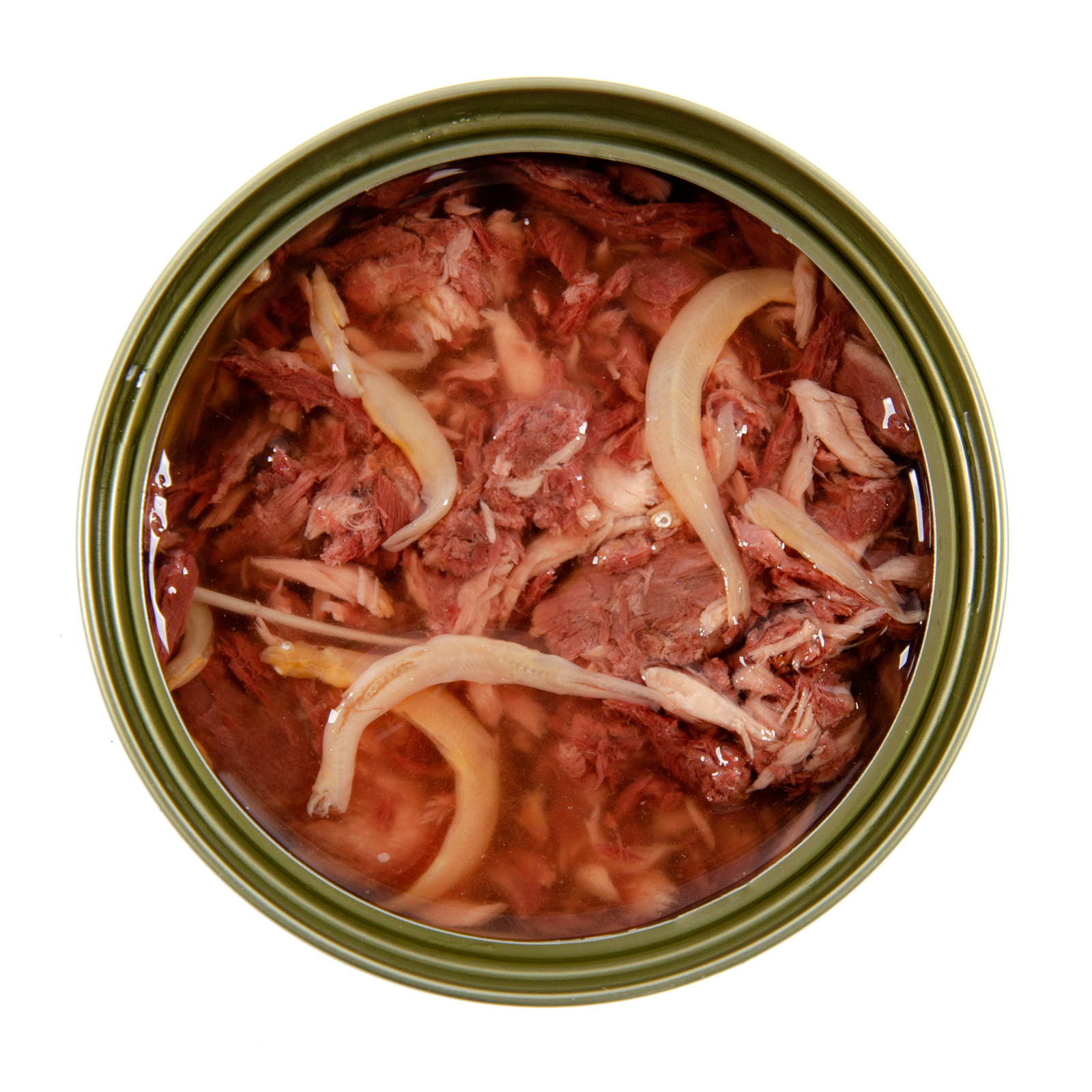 Состав: Тунец 55%, вода, мелкая пресноводная рыбка 3%, гуаровая камедь, таурин, карбонат кальция, сорбат калия, витамин А, витамин D3, витамин Е. Питательная ценность: сырой белок ≥ 12,0% ,сырой жир ≥ 0,1% , влажность ≤ 85,0%, сырая зола ≤ 2%, сырая клетчатка ≤ 0,9%.