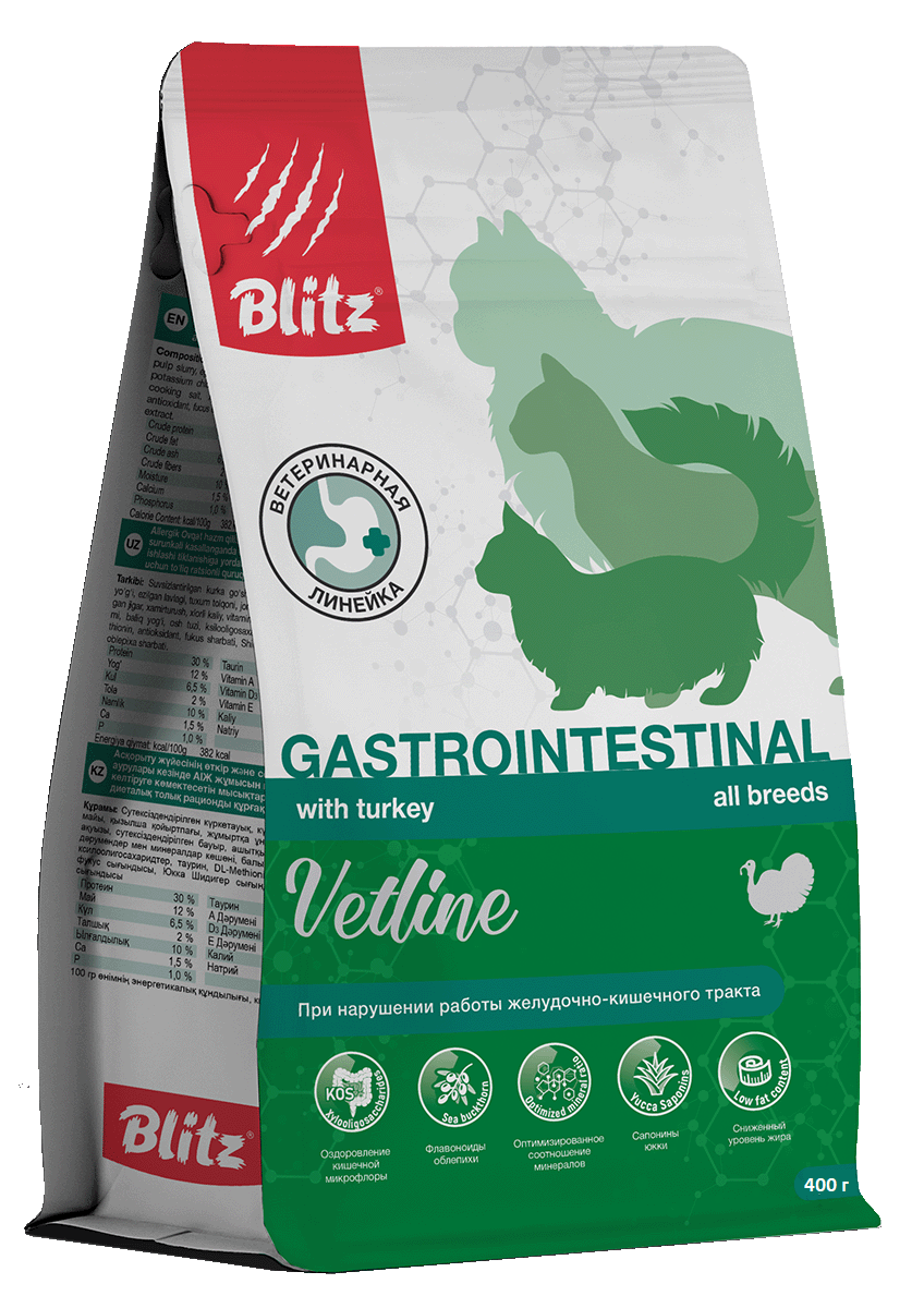 Особенности корма Blitz Gastrointestinal ветеринарной линейки Vetline