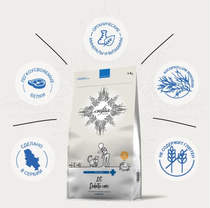 Craftia Galena Diabetic Сare - полнорационный диетический корм, разработан для регулирования уровня глюкозы при сахарном диабете.
