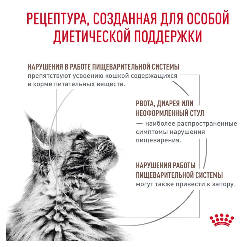 Сухой корм ROYAL CANIN® GASTROINTESTINAL FIBRE RESPONSE (ГАСТРОИНТЕСТИНАЛ ФАЙБР РЕСПОНС) - полнорационный диетический корм с повышенным содержанием клетчатки для кошек при запорах. Формула с высоких содержанием разных типов клетчатки облегчает транзит каловых масс при запорах и нормализует качетво стула, а также способствует поддержанию здорового пищеварения.