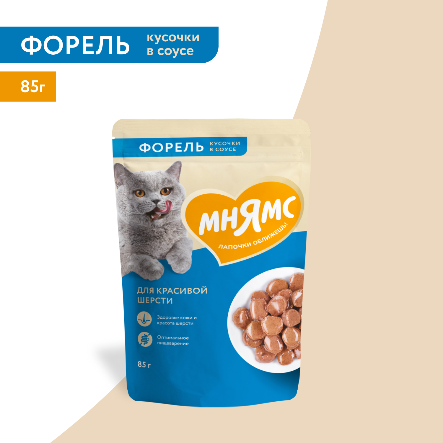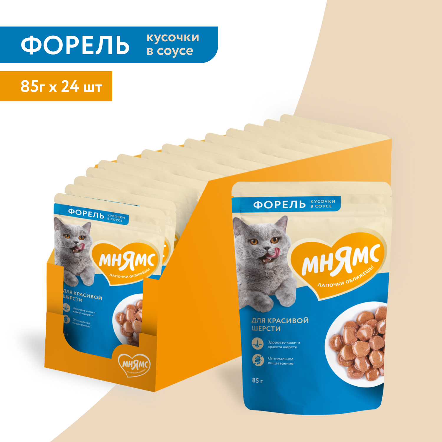 Влажный корм для кошек с форелью, набор из 24 шт., пауч 85 гр.