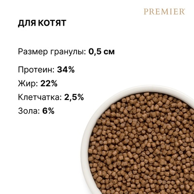Полнорационный сухой корм супер-премиум класса на основе свежего мяса индейки для котят с 3-недельного возраста, беременных и кормящих кошек.