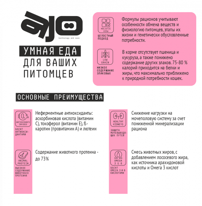 Благоприятное влияние на кишечник за счёт обволакивающих свойств, укрепляет сердце и сосуды, богат железом и цинком, содержит клетчатку и важные для здоровья питомца аминокислоты.