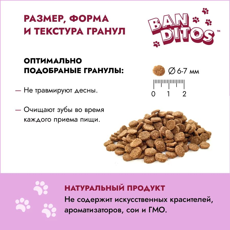 Корм Banditos для стерилизованных кошек создан для того, чтобы каждый приём пищи становился маленьким праздником.