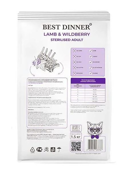Высококачественный полнорационный корм для кошек Best Dinner с ягненком и ягодами, создан с учетом физиологических потребностей кошек. Гранулы в форме сердечек не оставят равнодушными даже самых привередливых кошек.