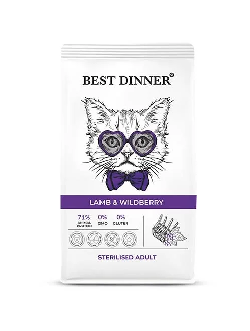 Высококачественный полнорационный корм для кошек Best Dinner с ягненком и ягодами, создан с учетом физиологических потребностей кошек. Нежное мясо ягненка легко усваивается и не нагружает пищеварительный тракт, благодаря чему данный корм подходит для кошек склонных к аллергии и проблемам с пищеварением.Гранулы в форме сердечек не оставят равнодушными даже самых привередливых кошек.