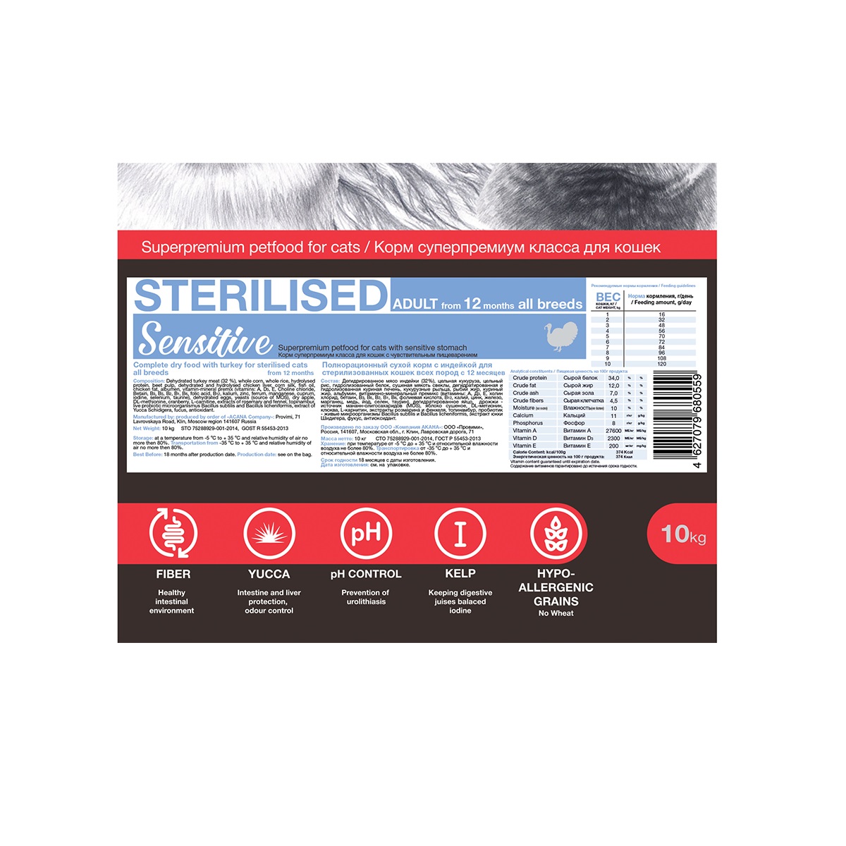 Сниженное содержание жира, оптимальное содержание клетчатки и L-карнитин препятствует набору лишнего веса.