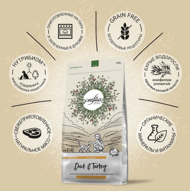 CRAFTIA HARMONA — корм для кошек ультрапремиум класса, созданный с любовью к природе.