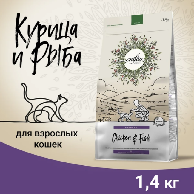 CRAFTIA HARMONA — корм кошек для ультрапремиум класса, созданный с любовью к природе.