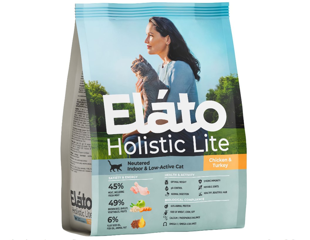 Elato Holistic Lite – полнорационный сухой корм для кастрированных котов и стерилизованных кошек с курицей и индейкой / для домашних малоактивных кошек, разработанный по принципам правильного питания