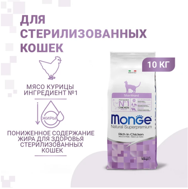 Monge (Монж) Cat Daily Line сухой корм из мяса курицы для стерилизованных кошек и кастрированных котов 10 кг.