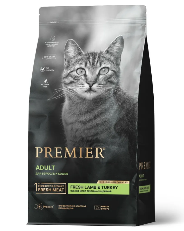 Свежее гипоаллергенное и питательное мясо ягненка и постной индейки благотворно влияют на пищеварительную систему кошки. Благодаря гипоаллергенным ингредиентам, одному виду зерновых, отсутствию глютена, корм имеет отличную усвояемость, высокую пищевую ценность и помогает оставаться вашему питомцу здоровым и жизнерадостным на протяжении долгих лет жизни.