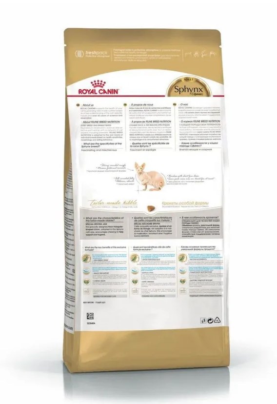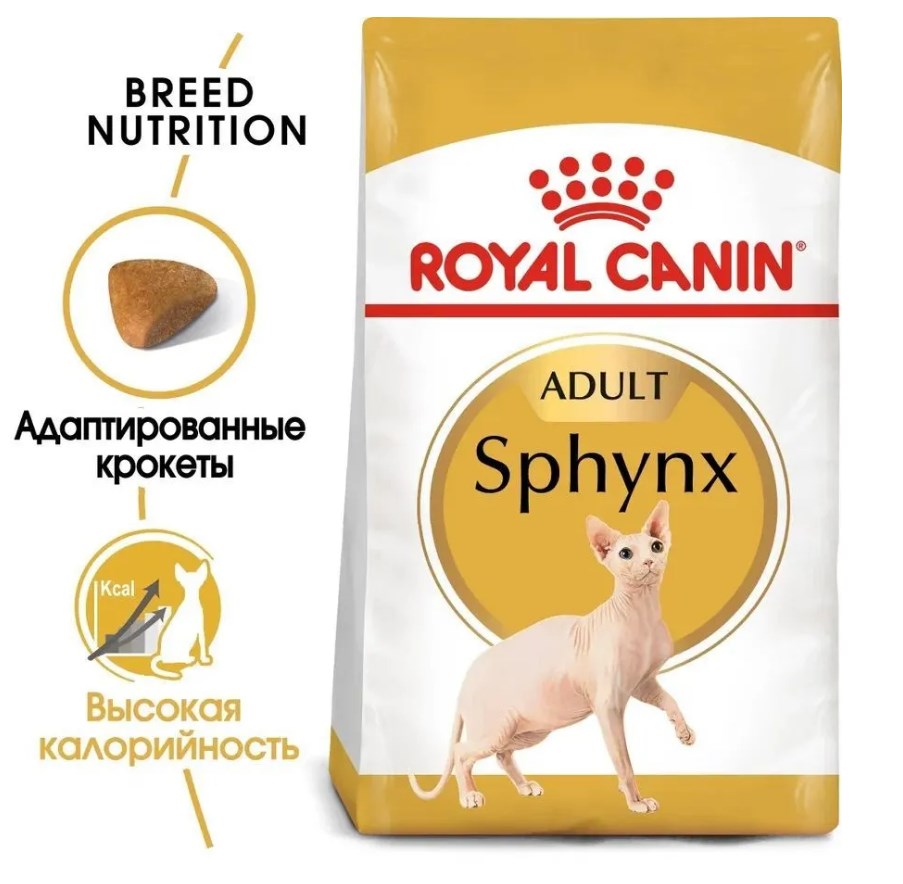 Корм сухой полнорационный для кошек - Специально для взрослых кошек породы сфинкс в возрасте от 1 года и старше SPHYNX (СФИНКС) ROYAL CANIN®, подходящий для кошек породы сфинкс в возрасте от 1 года и старше, специально разработан с учетом потребностей вашей кошки в питательных веществах.