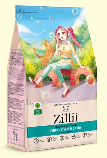 Полнорационный сухой корм ZILLII SKIN & COAT CARE - это здоровье кожи и блестящая красивая шерсть у Вашего питомца! Состояние шерсти кошки – один из показателей ее здоровья и, если шерсть тусклая и ломкая, то это говорит о недостатке необходимых питательных веществ. Формула ZILLII SKIN & COAT CARE улучшает эластичность кожи и делает шерсть мягкой и шелковистой, оказывая видимый эффект. Особые питательные вещества (например, такие, как жирные кислоты Омега 6 и Омега 3, лососевое масло, семена льна) способствуют укреплению и защите кожного барьера, обновлению кожных покровов и поддержке эластичности кожи, а также благотворно влияют на состояние шерсти, её естественную красоту, блеск и здоровый рост. ZILLII SKIN & COAT CARE изготовлен на основе дегидрированного мяса индейки и свежего мяса ягненка. Индейка, являясь диетическим мясом, обладает прекрасной усвояемостью и содержанием питательных веществ. Польза индейки в том, что ее мясо содержит в большом количестве такие витамины, как А и Е.