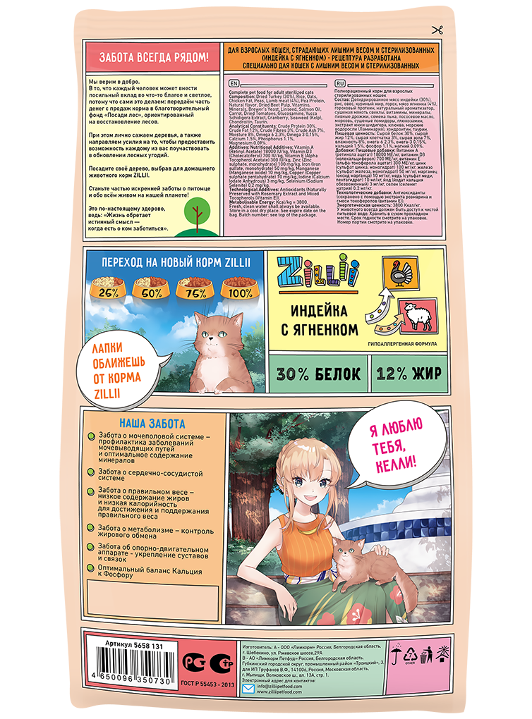 Стерилизованное животное требует к себе особого отношения, касательно питания, чтобы избежать различных проблем, связанных со здоровьем. Полнорационный сухой корм ZILLII LIGHT/STERILIZED Turkey with Lamb учитывает все особенности организма такой кошки. Он изготовлен на основе дегидрированного мяса индейки и свежего мяса ягненка. Индейка, являясь диетическим мясом, обладает прекрасной усвояемостью и содержанием питательных веществ. Мясо ягненка низкокалорийное, очень легко усваивается и содержит достаточное для организма количество животных жиров, питательных веществ и микроэлементов.