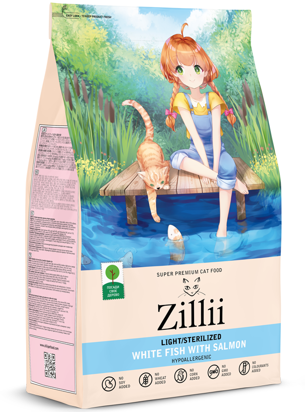 После стерилизации обмен веществ в организме кошки меняется, поэтому и требования к питанию становятся другими. Полнорационный сухой корм ZILLII LIGHT/STERILIZED White Fish with Salmon специально изготовлен для стерилизованных кошек и удовлетворяет всем требованиям, предъявляемым к питанию стерилизованных животных. В белой рыбе рекордное количество качественного и легкоусвояемого белка, а также витаминов группы B, которые способствуют детоксикации организма и борются с воспалительными процессами, а еще в ней присутствуют витамины А и С в большом количестве.