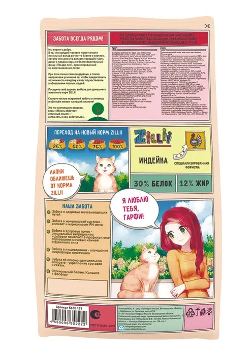 Рецептура ZILLII URINARY поддерживает работу мочевыделительной системы кошек, нормализуя уровень PH мочи и снижая, тем самым, риски заболевания мочевыводящих путей. Данная формула содержит специальные ингредиенты и необходимые добавки, помогающие в профилактике образования мочевых камней струвитного типа. Рецептура содержит достаточное для организма кошки количество животных белков, жиров, витаминов и питательных веществ.