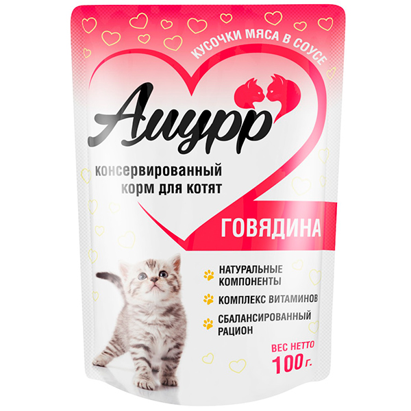 Амурр Мясные кусочки с говядиной в соусе - это вкусный и качественный корм для котят, который обогащен всеми необходимыми питательными веществами и витаминами. В составе нет консервантов, ароматизаторов, усилителей вкуса и запаха, только натуральные продукты отечественного производства, прошедшие строгий контроль качества. Рацион имеет притягательный аромат, и ваша кошка с удовольствием захочет попробовать его. Мясо и субпродукты (говядина не менее 35%), злаки, таурин, минеральные вещества, витамины.