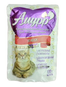 Состав: мясо и субпродукты (ягненок не менее 10%), злаки, таурин, минеральные вещества, витамины.