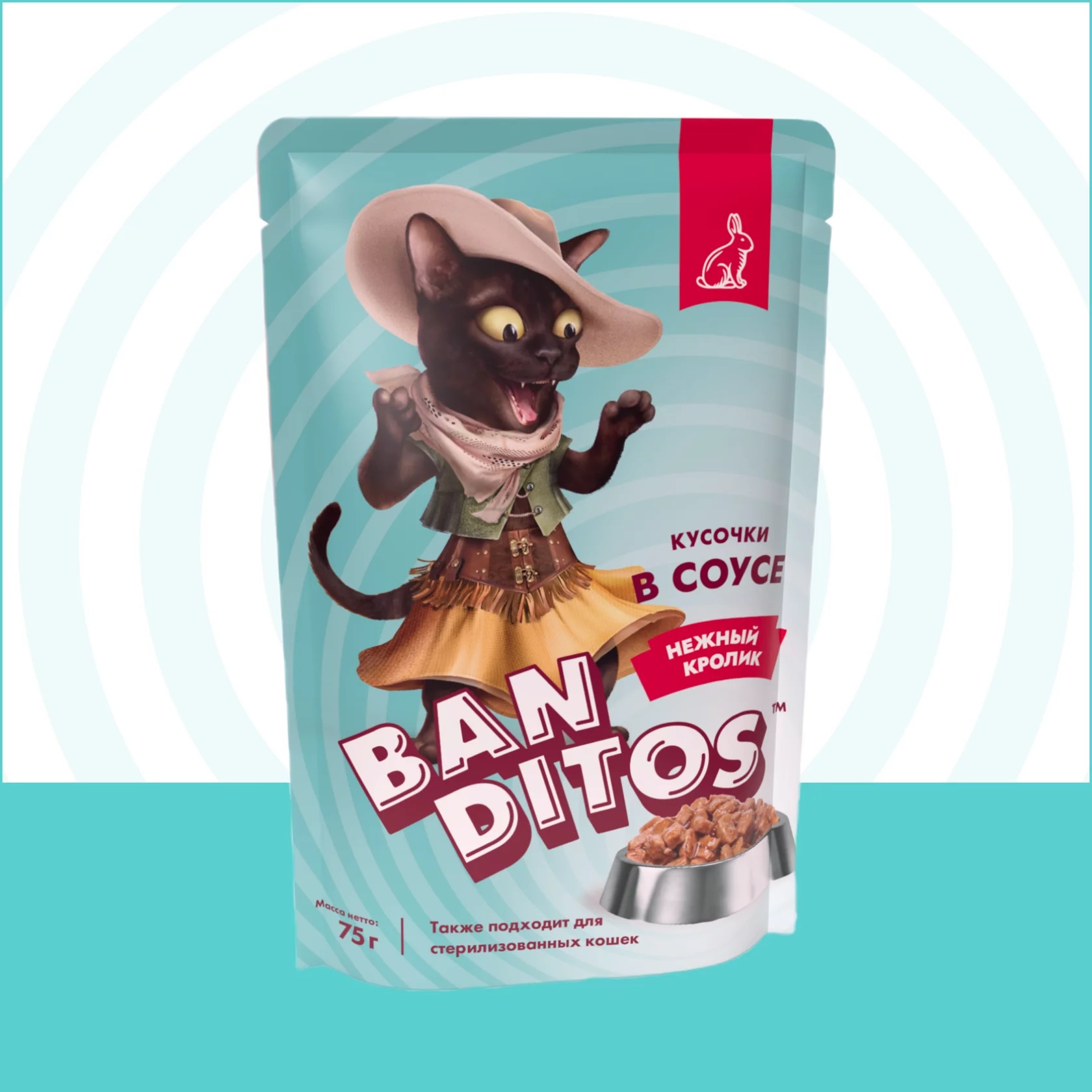 Не попробуешь — не узнаешь, и не нужно стесняться. В линейке Banditos коту есть чем заняться. Вот кусочки в соусе, с ароматом кролика и мясной подливкой — лучше, чем сливки, и полезней во сто крат! Ваш бандит- аристократ смекнёт быстро, что и как. Нежирный и нежный, сочный и насыщенный наш консервированный корм отлично утоляет голод. Без чувства тяжести в желудке — можно есть хоть пять раз в сутки. Можно кушать ежедневно: сбалансирован состав. Там и мясо, субпродукты — подкрепится кот, устав. Витаминные добавки, минералы для костей, даже клюква для затравки — но она не для детей. Если кот стерилизован, старше года и любим — корм Banditos «Нежный кролик» на обед незаменим!