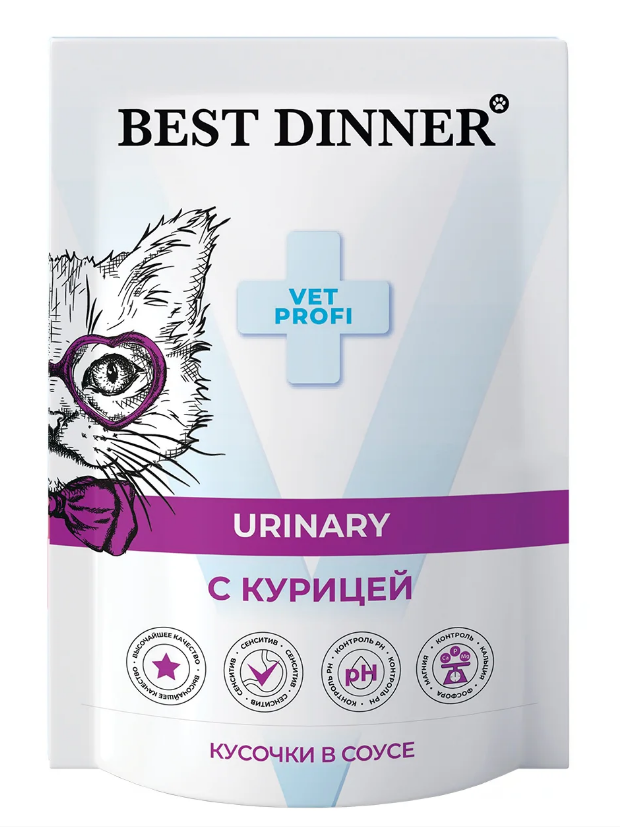 Паучи Best Dinner Exclusive Vet Profi Urinary кусочки в соусе с Курицей для взрослых кошек для профилактики МКБ.