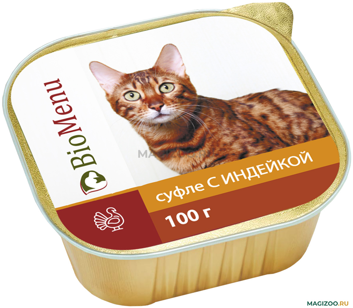 Консервы мясные тушеные для кошек - BioMenu (БиоМеню) Суфле с индейкой. Изготовлено из качественного российского сырья. Не содержит сои, консервантов, искусственных красителей, ароматизаторов и генномодифицированных ингредиентов.
