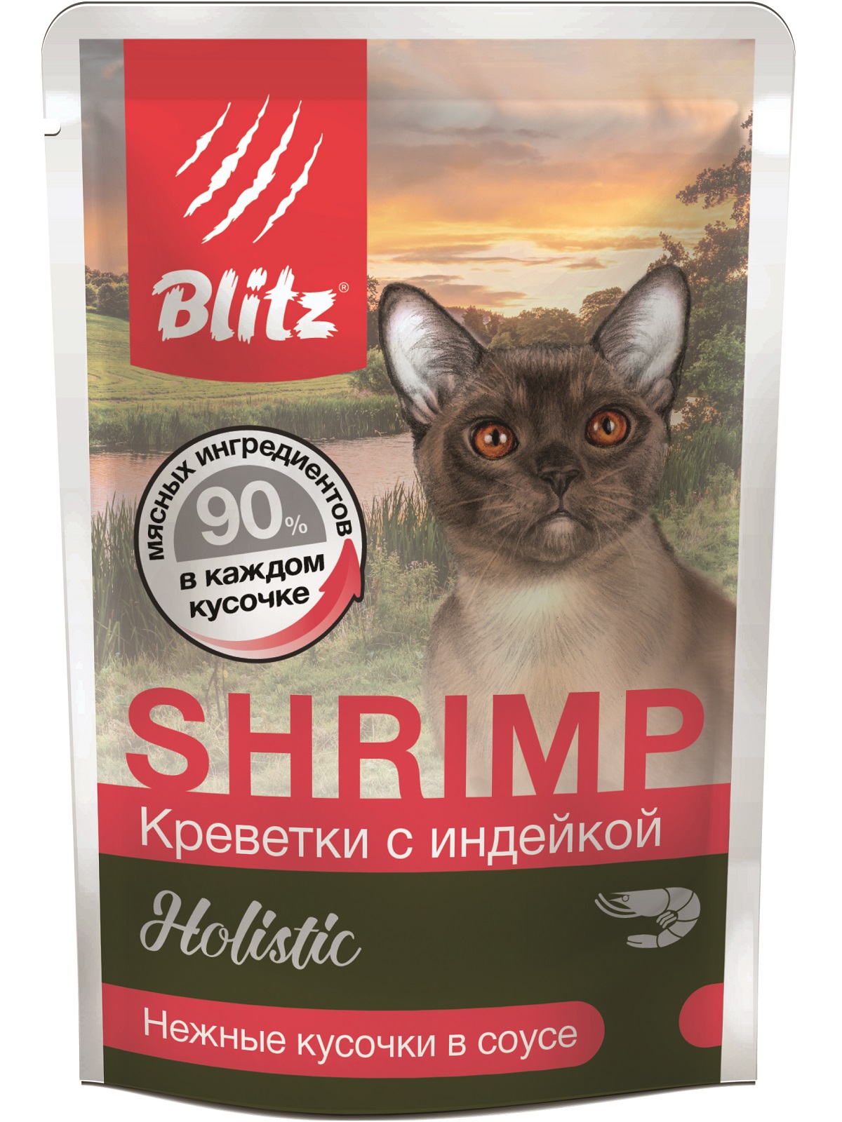 Влажный корм для кошек «Креветки с индейкой»– настоящая жемчужина линейки Blitz Holistic.