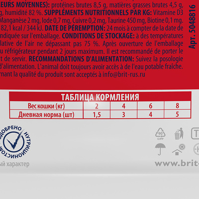 Паучи отлично дополнят полнорационный сухой корм Brit Premium и внесут разнообразие в питание Вашей кошки.