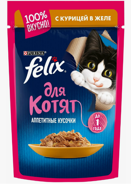 Разрабатывая влажные корма для домашних питомцев, эксперты Purina создали совершенно особый корм для кошек —рацион Felix «Аппетитные кусочки» для котят. Нежнейшие кусочки, покрытые сочным желе, помогут Вашему котенку не только получать необходимую энергию и микронутриенты, но и постепенно привыкать к «взрослой» пище, а также с самого детства наслаждаться богатством нежнейших вкусов.