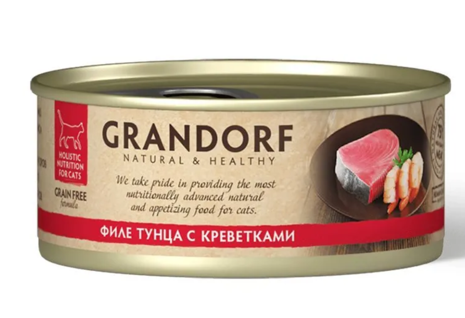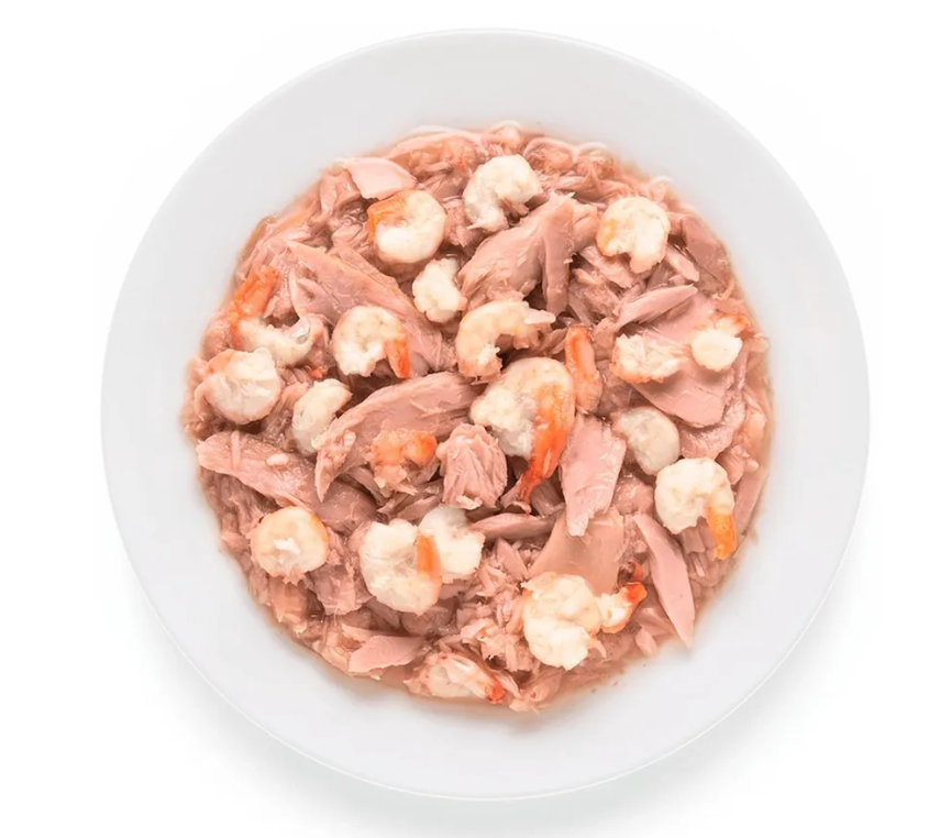 Состав: Филе тунца (60%), Креветки (15%), Бульон (25%).