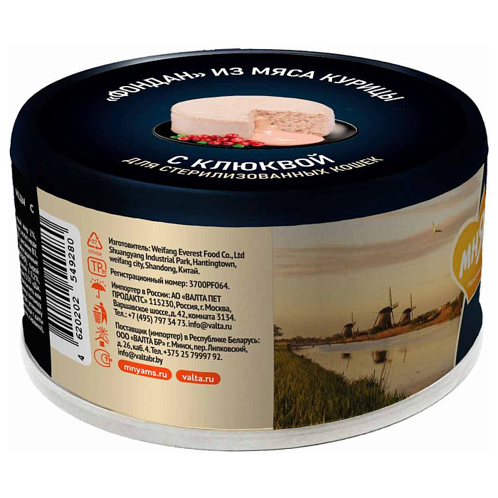 Влажный корм Мнямс Деликатес "Фондан" из мяса курицы с клюквой для стерилизованных кошек