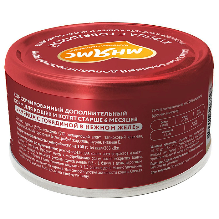 Прекрасно подходит привередливым кошкам, а также питомцам со сниженным потреблением воды. «Мнямс» консервированный дополнительный корм для для кошек и котят старше 6 месяцев «Курица в нежном желе" гарантирует, что ваш питомец получит только качественный и вкусный продукт, который прекрасно разнообразит его рацион, поддержит здоровье и обеспечит энергией.