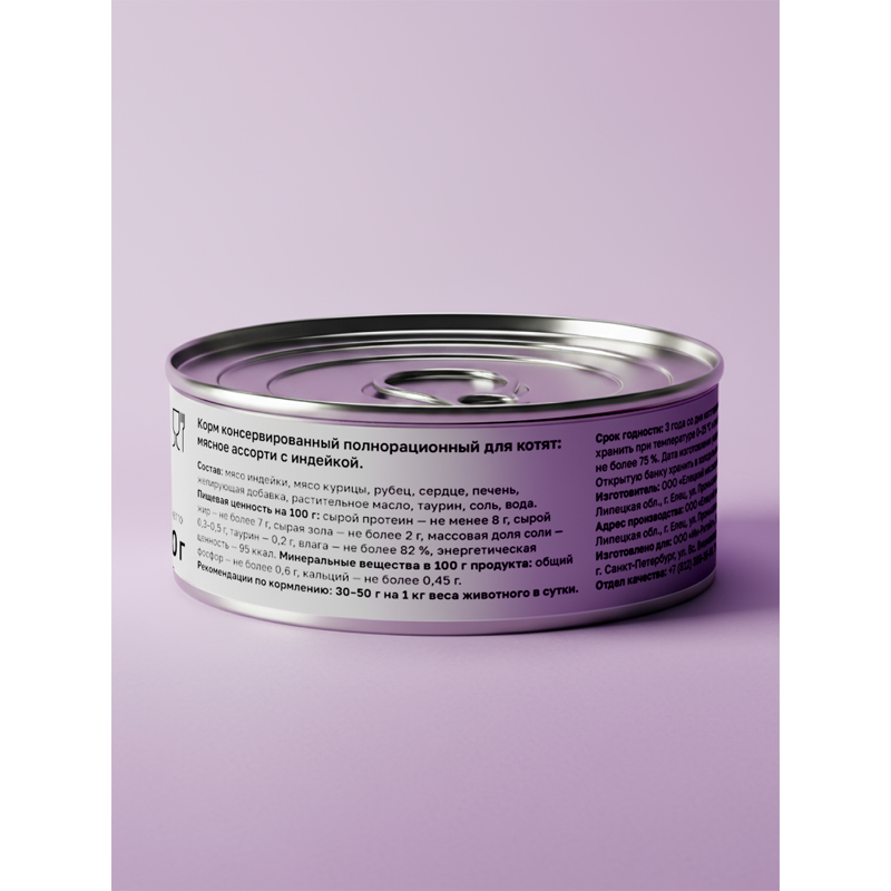 Вкусный и полезный консервированный корм для котят, изготовленный из 100% свежего мяса.