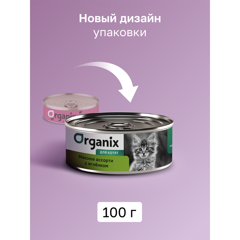 Консервы Organix для котят, мясное ассорти с ягнёнком