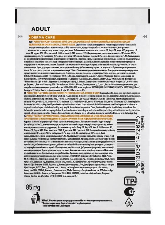 •Содержит Омега-3 и Омега-6 жирные кислоты для поддержания здоровья кожи и красоты шерсти