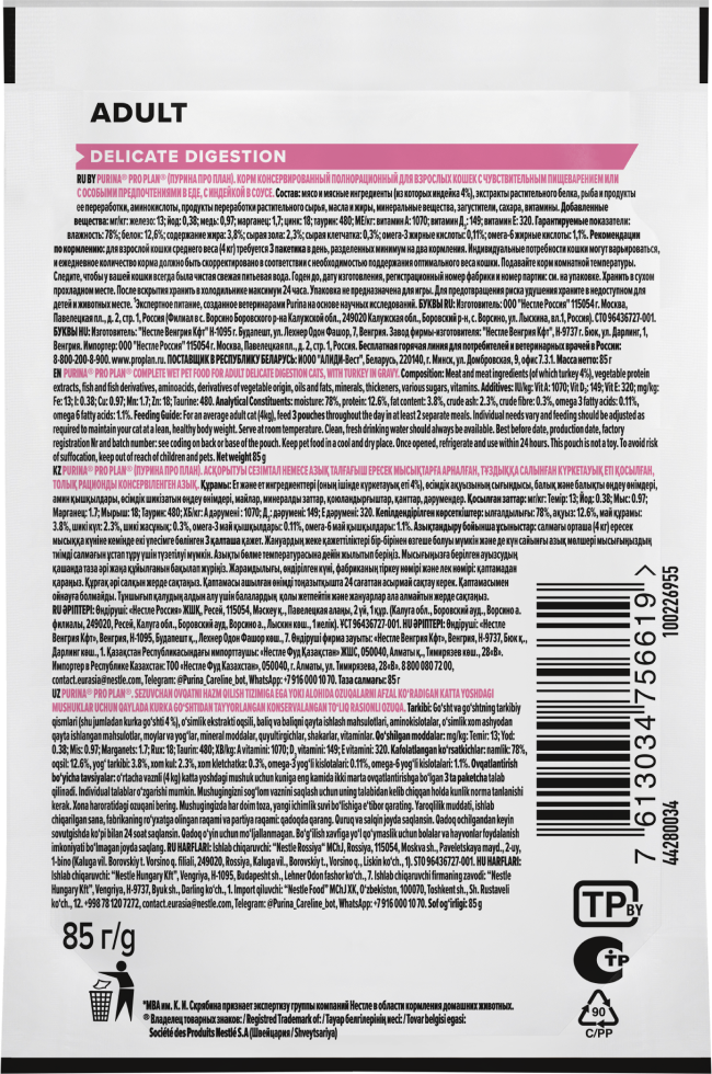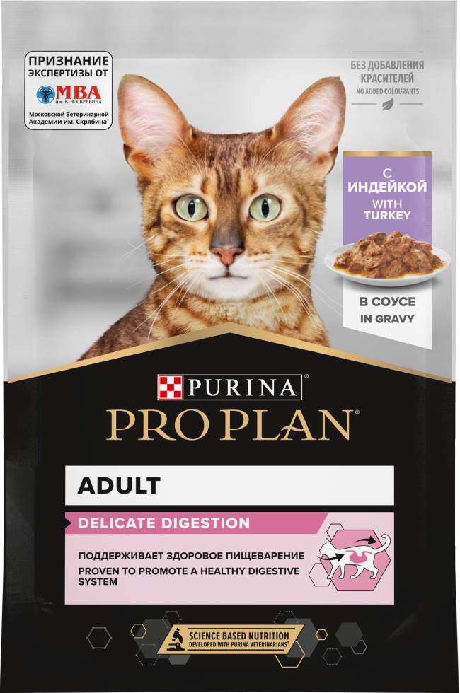 Команда квалифицированных ветеринарных специалистов разработала влажный корм PURINA® PRO PLAN® DELICATE DIGESTION для взрослых кошек с чувствительным пищеварением.