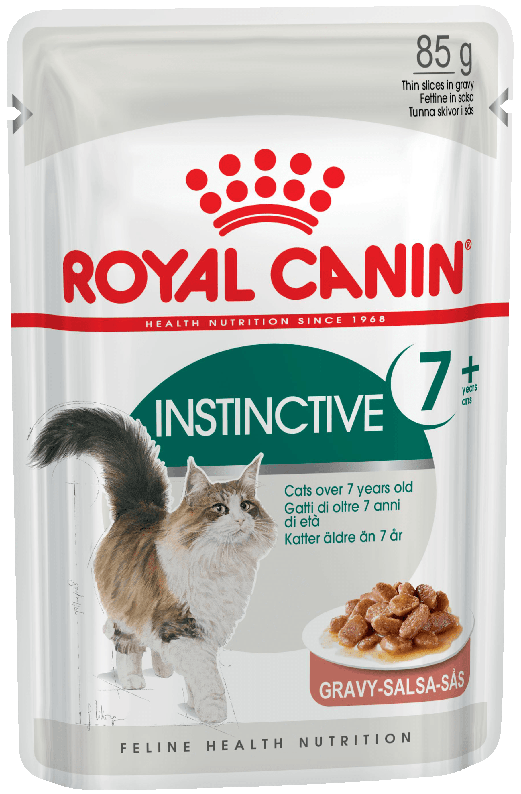 Корм консервированный полнорационный для кошек в возрасте старше 7 лет INSTINCTIVE 7+ (ИНСТИНКТИВ 7+). Мелкие кусочки в соусе, ROYAL CANIN®, подходящий для кошек в возрасте старше 7 лет, специально разработан с учетом потребностей вашей кошки в питательных веществах.