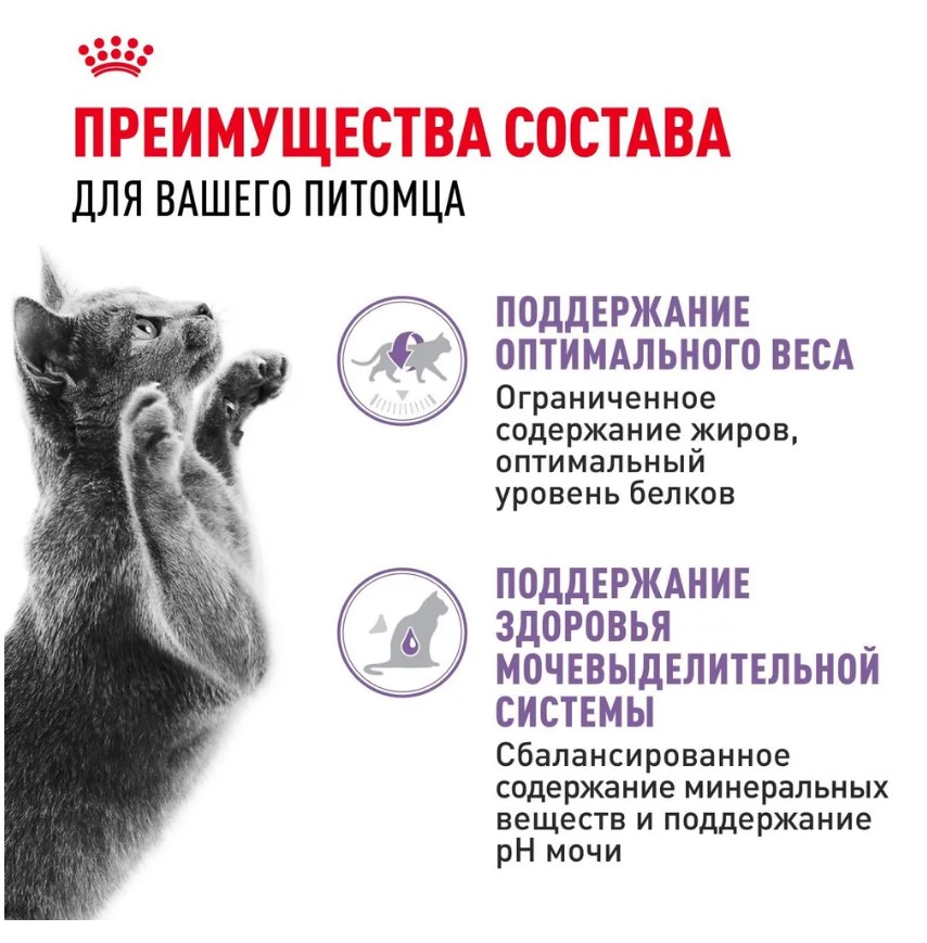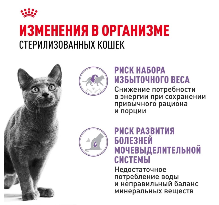 ROYAL CANIN® Sterilised (СТЕРИЛАЙЗД) содержит ограниченное количество жиров и оптимальный уровень белков для поддержания оптимального веса.