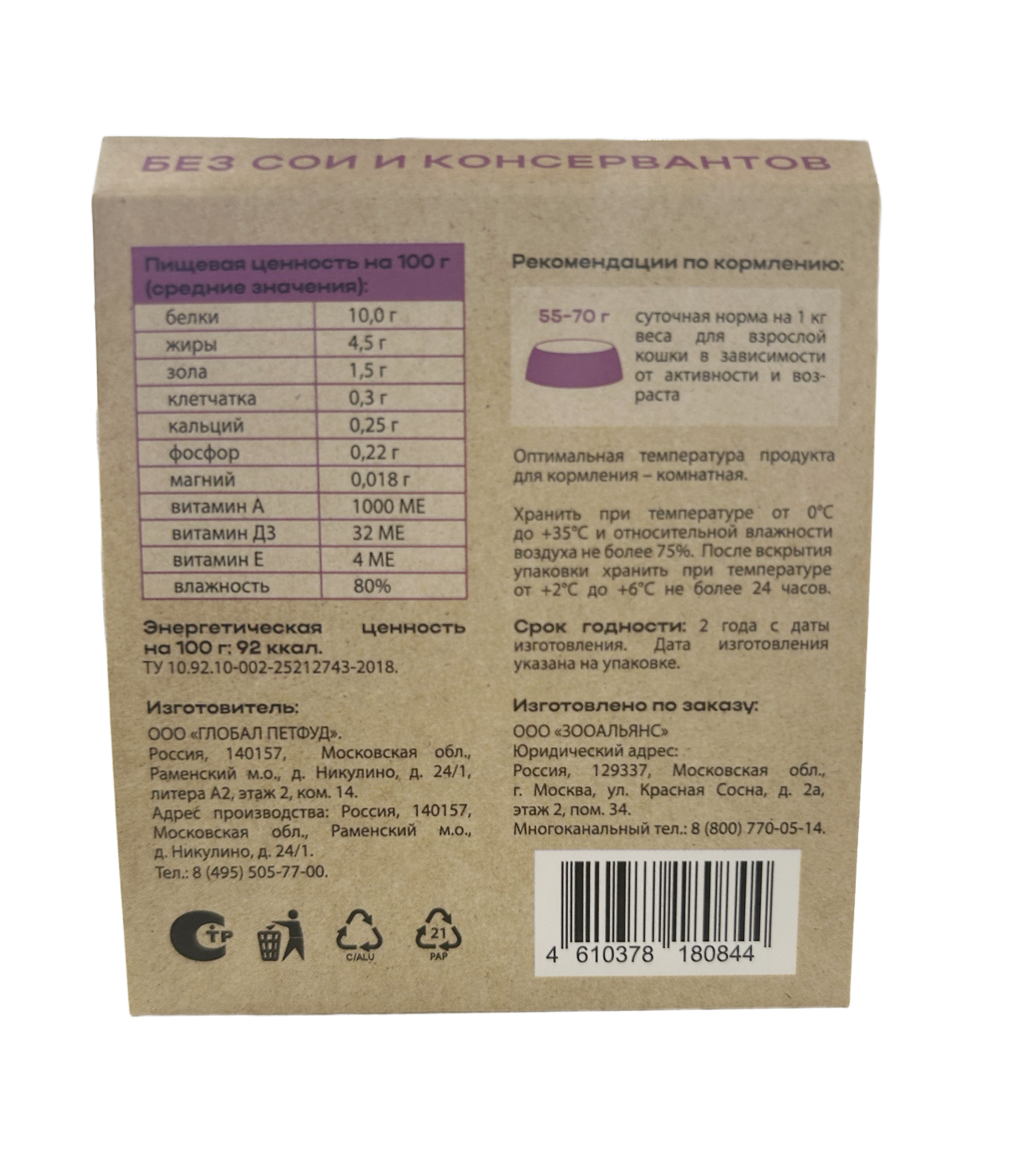 ✅ Поддержка иммунитета —витаминный комплекс (А, D3, Е) в составе помогает укреплять естественные защитные силы организма, поддерживая здоровье питомца каждый день.
