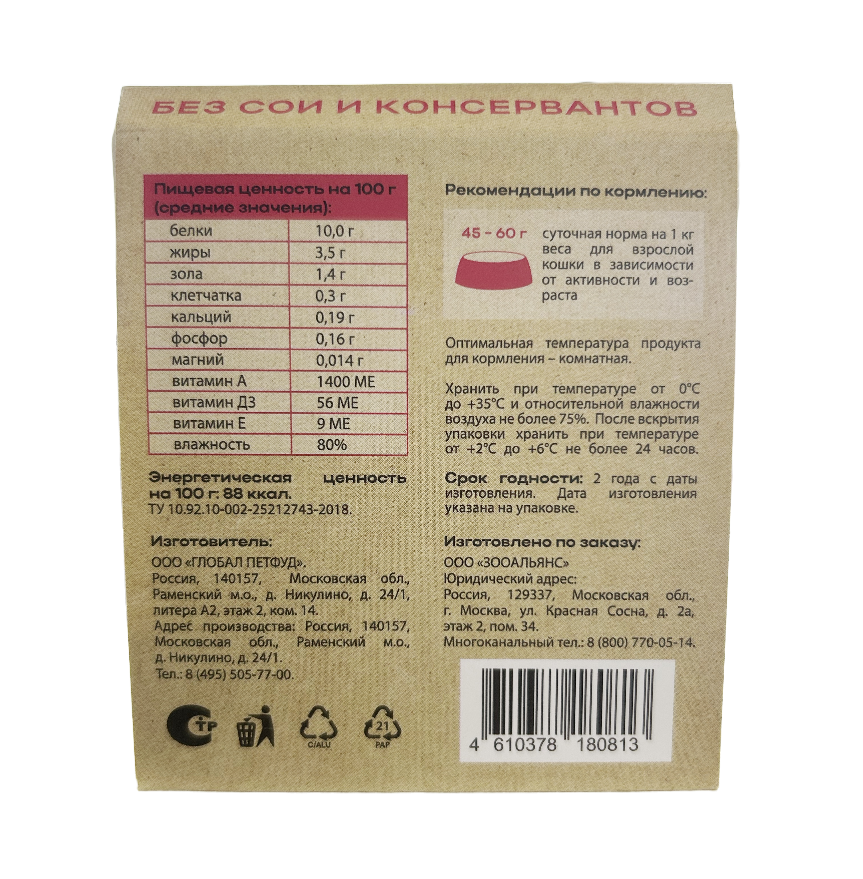✅ Поддержание здорового веса —пониженное содержание жиров (3,5 г на 100 г) и L-карнитин в составе помогают контролировать массу тела и поддерживать активный метаболизм у стерилизованных кошек.