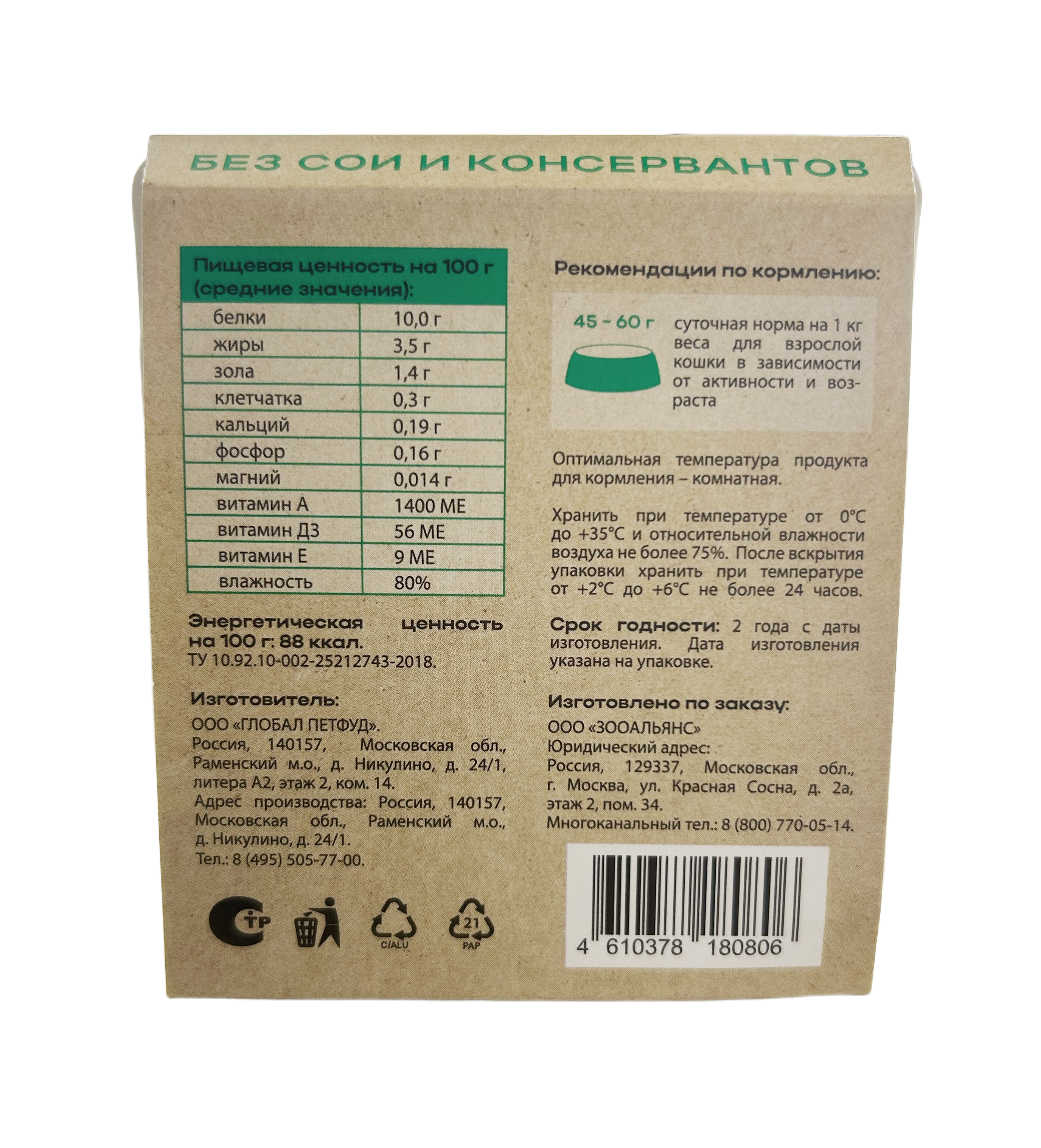 ✅ Свежее мясо на первом месте — не менее 80% мяса и субпродуктов в составе, включая кролика. Крольчатина считается идеальным диетическим мясом: оно легко усваивается, богато белком и подходит даже для самых чувствительных кошек.