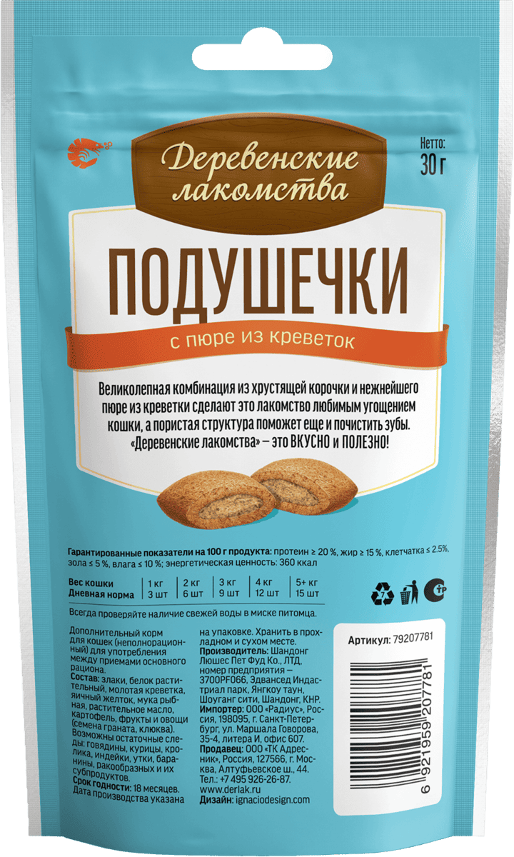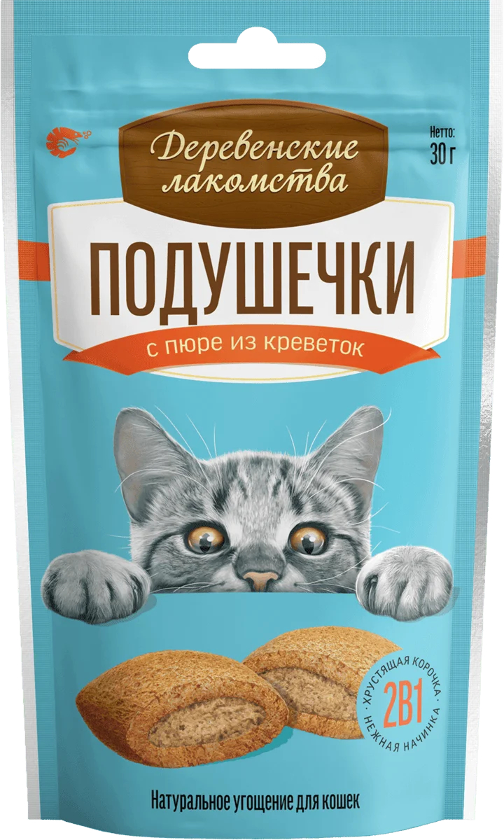 Великолепная комбинация из хрустящей корочки и нежнейшего натурального пюре из креветок делают это лакомство любимым угощением кошки, а пористая структура помогает питомцу чистить зубы.