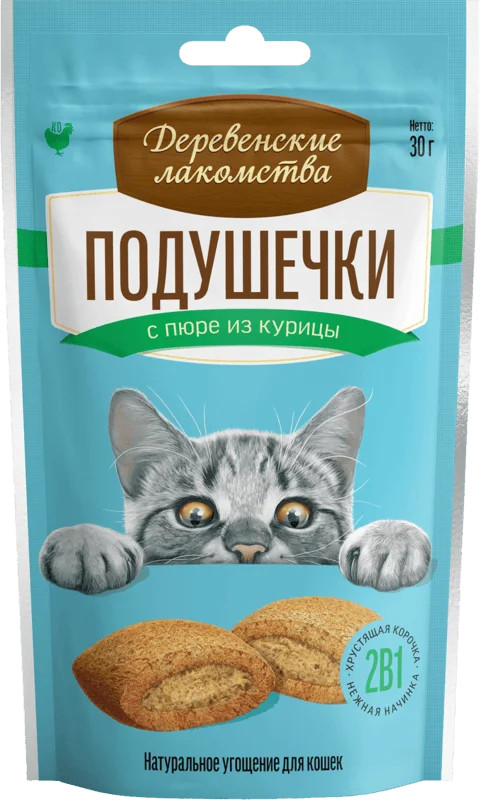Великолепная комбинация из хрустящей корочки и нежнейшего натурального пюре из курицы делают это лакомство любимым угощением кошки, а пористая структура помогает питомцу чистить зубы.